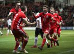 Will Vaulks (No 7) celebrates Wales winner with other players